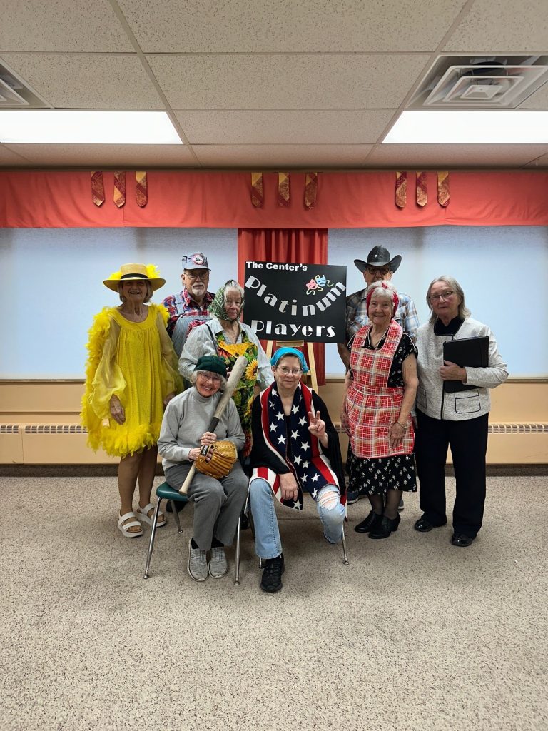 Did you know that the Platinum Players theatre group has been an important part of The Center for over a decade? It’s true! Kathy Tusa and Diane Saumer Guidi were two of the original members, and Dorothy Splittgerber joined the cast around ten years ago. Hubby, Mike, joined Dorothy as a Platinum Player around five years…