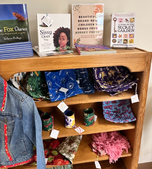 GREETING CARDS: The repurposed greeting cards are made by a group of volunteers who meet on Mondays and Fridays. Our Card Makers take used cards and upcycle them into beautiful and unique cards for every occasion. For .75, shoppers will get a beautiful card and an envelope. Pop-up cards are also available for $1.00.