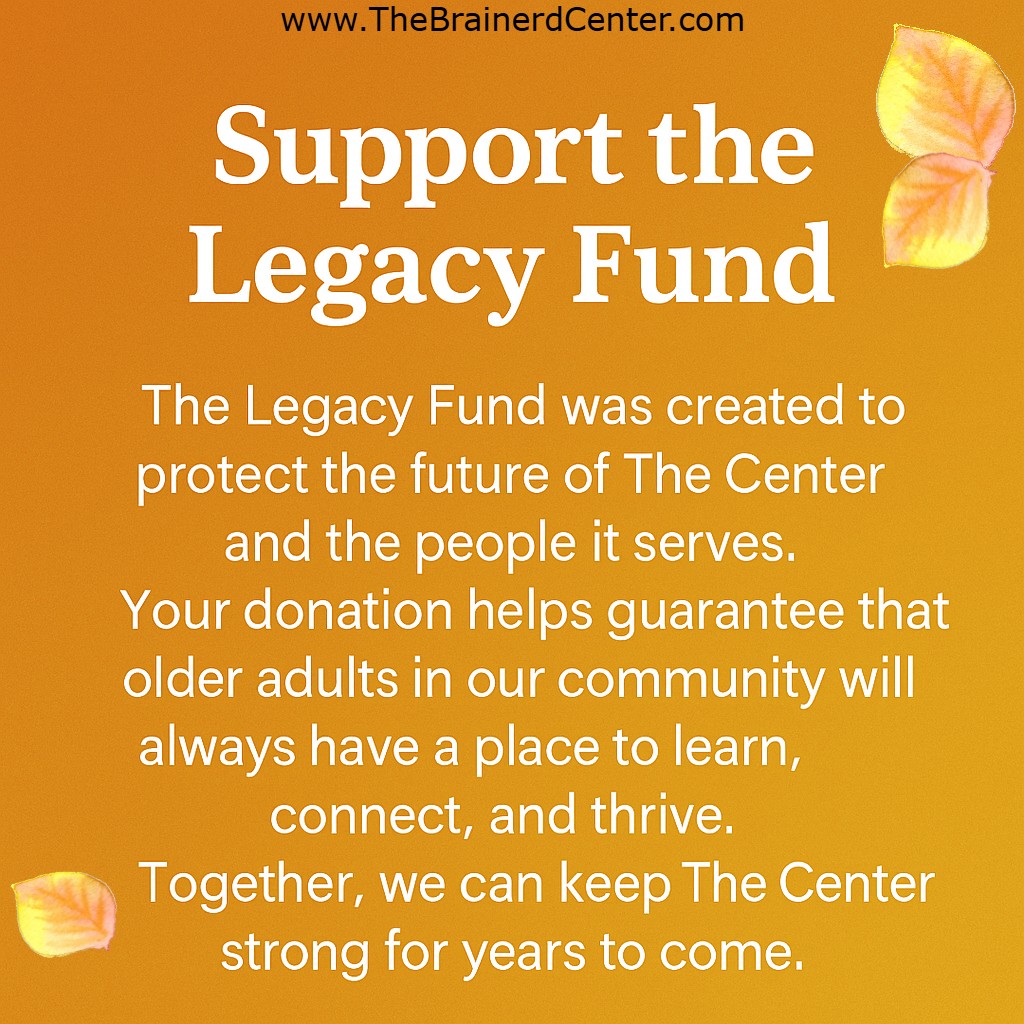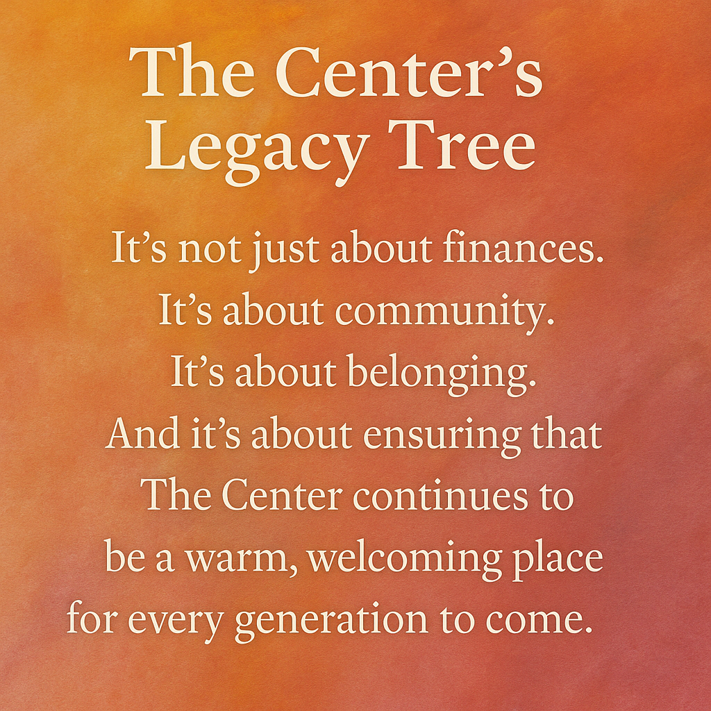 One of the most wonderful things about the Legacy Fund is that anyone can contribute—at any time, in any amount. All donations are tax-deductible and are invested so they continue to grow. Over time, the interest earned will help support The Center’s operations and programs.