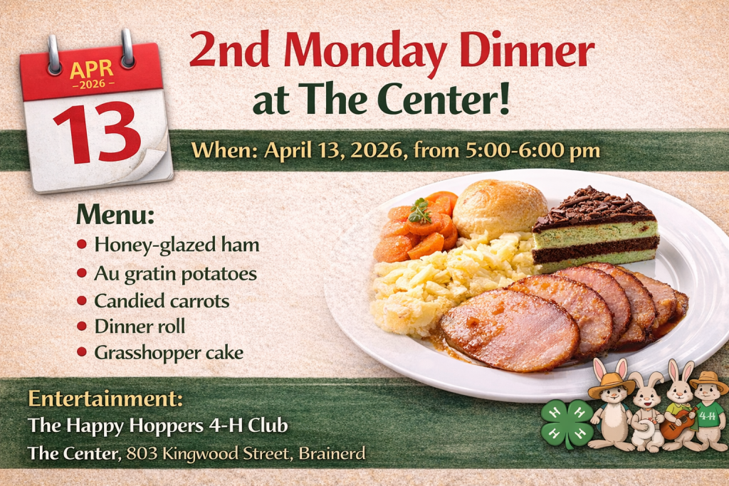 Kara from Crow Wing Energized will be at The Center to share practical tips for eating healthy when cooking for one or two.