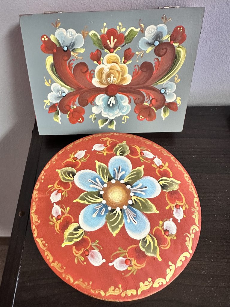 The Center has several great examples of activities that support the Sons of Norway desire to continue some of the “old ways.” The Center offers members and the public to experience rosemaling. Rosemaling is the decorative folk art of rural Norway that flourished in the 1700’s and 1800’s. Rosemaling (rose painting) could be found on walls, ceilings, and furniture throughout Norway in homes and churches.