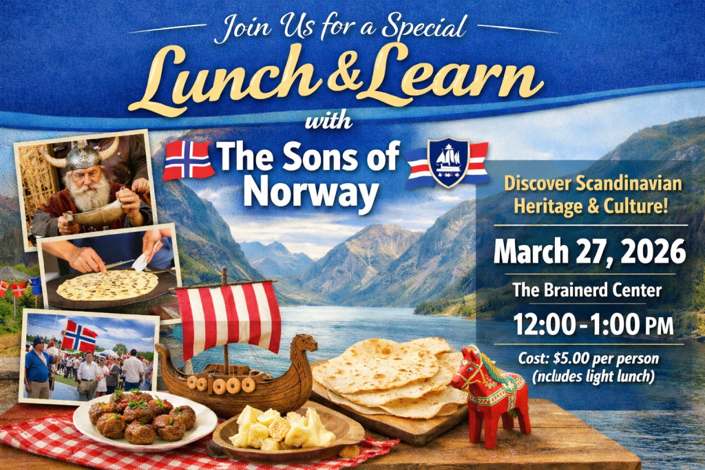 The Sons of Norway will be on hand to share the organization’s history and discuss how to preserve and enjoy Scandinavian heritage and culture during our March 27, 2026, Lunch and Learn at The Center.